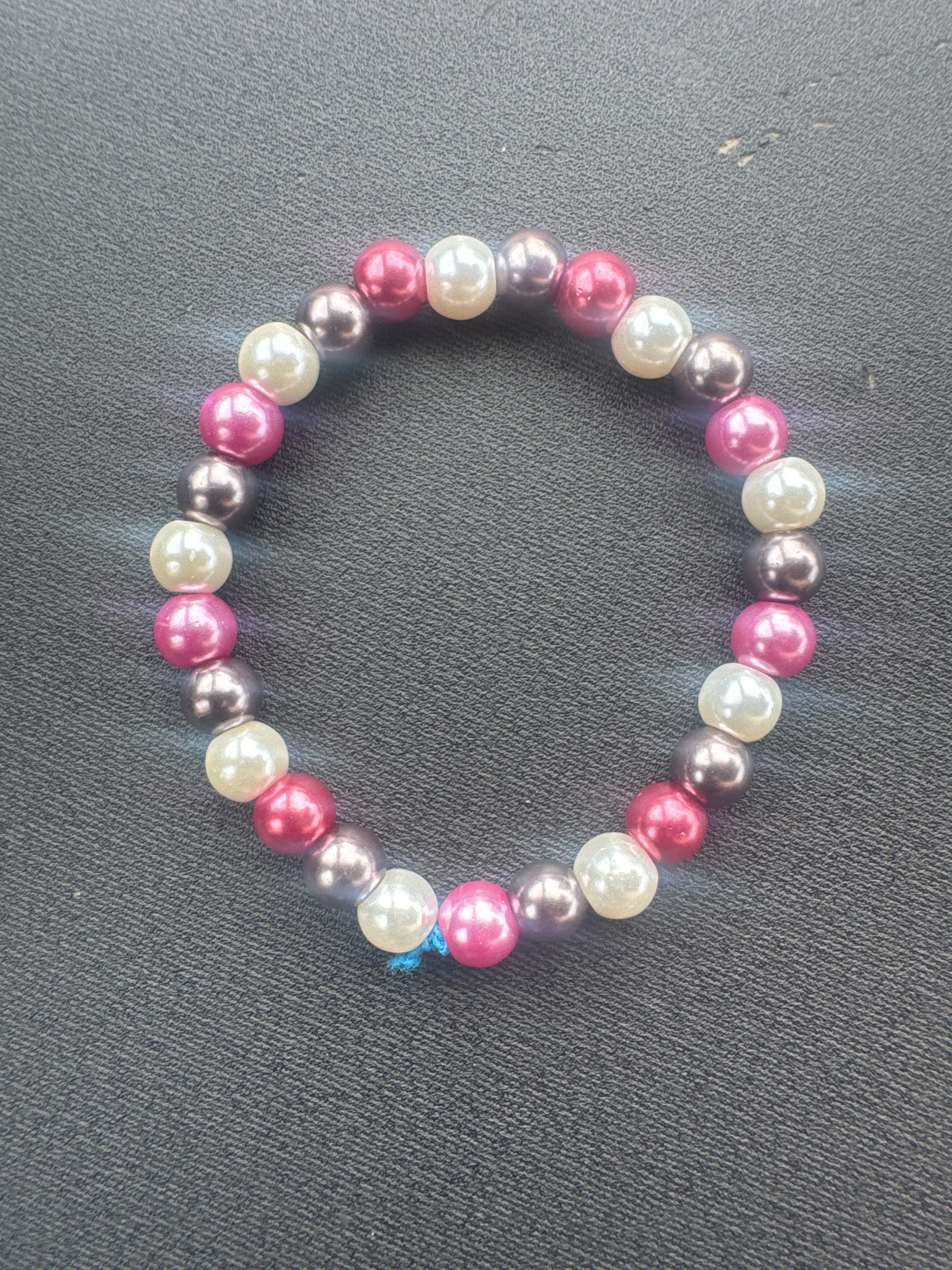 Add a bold splash of elegance to your look with this stunning tri-tone pearl bracelet. Featuring radiant beads in shimmering rose-pink, soft ivory pearl, and metallic graphite, this piece delivers a perfect mix of feminine charm and modern edge. Each bead has a glossy, luminous finish that catches the light beautifully, giving the bracelet a polished and luxurious feel.